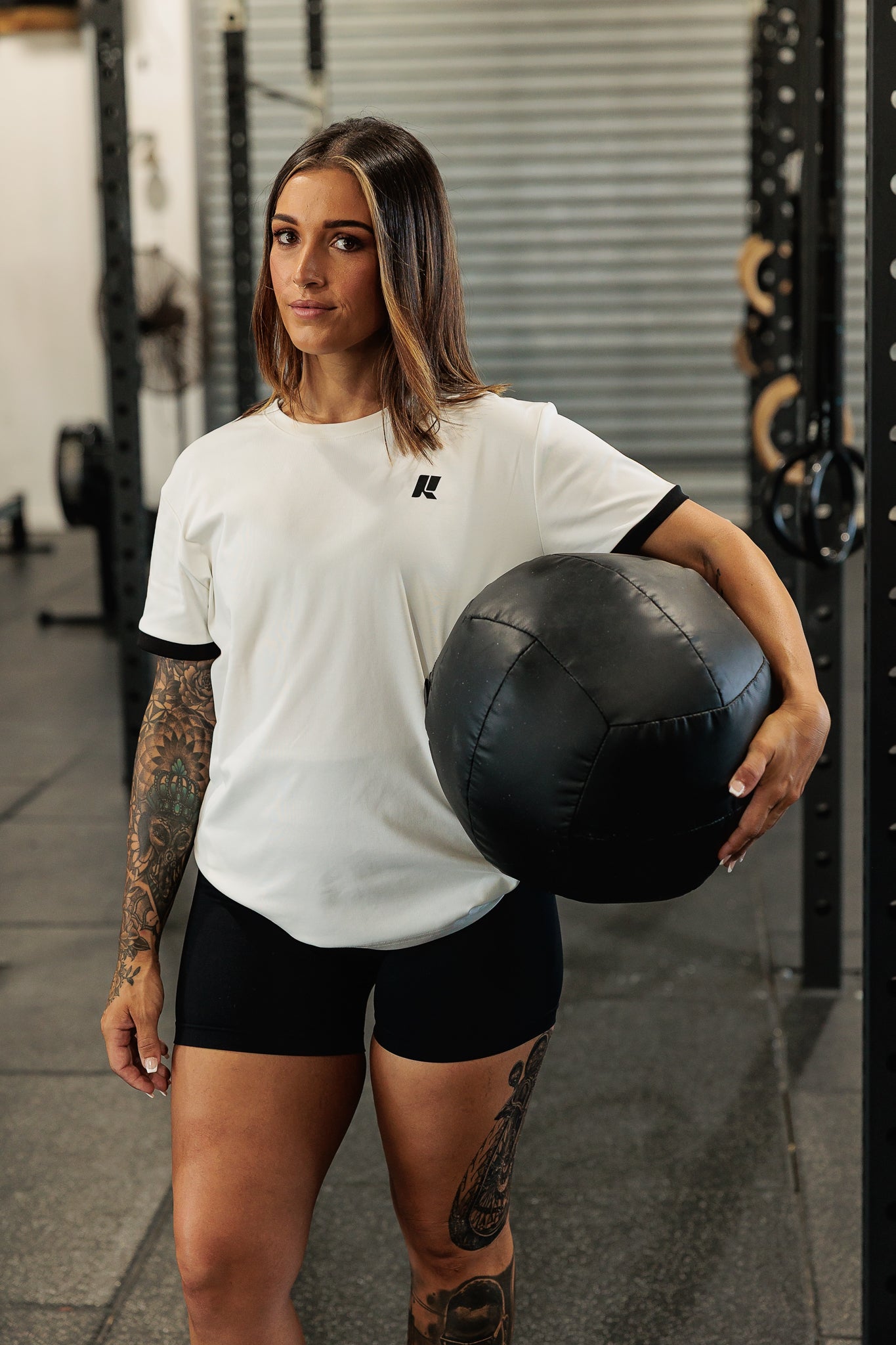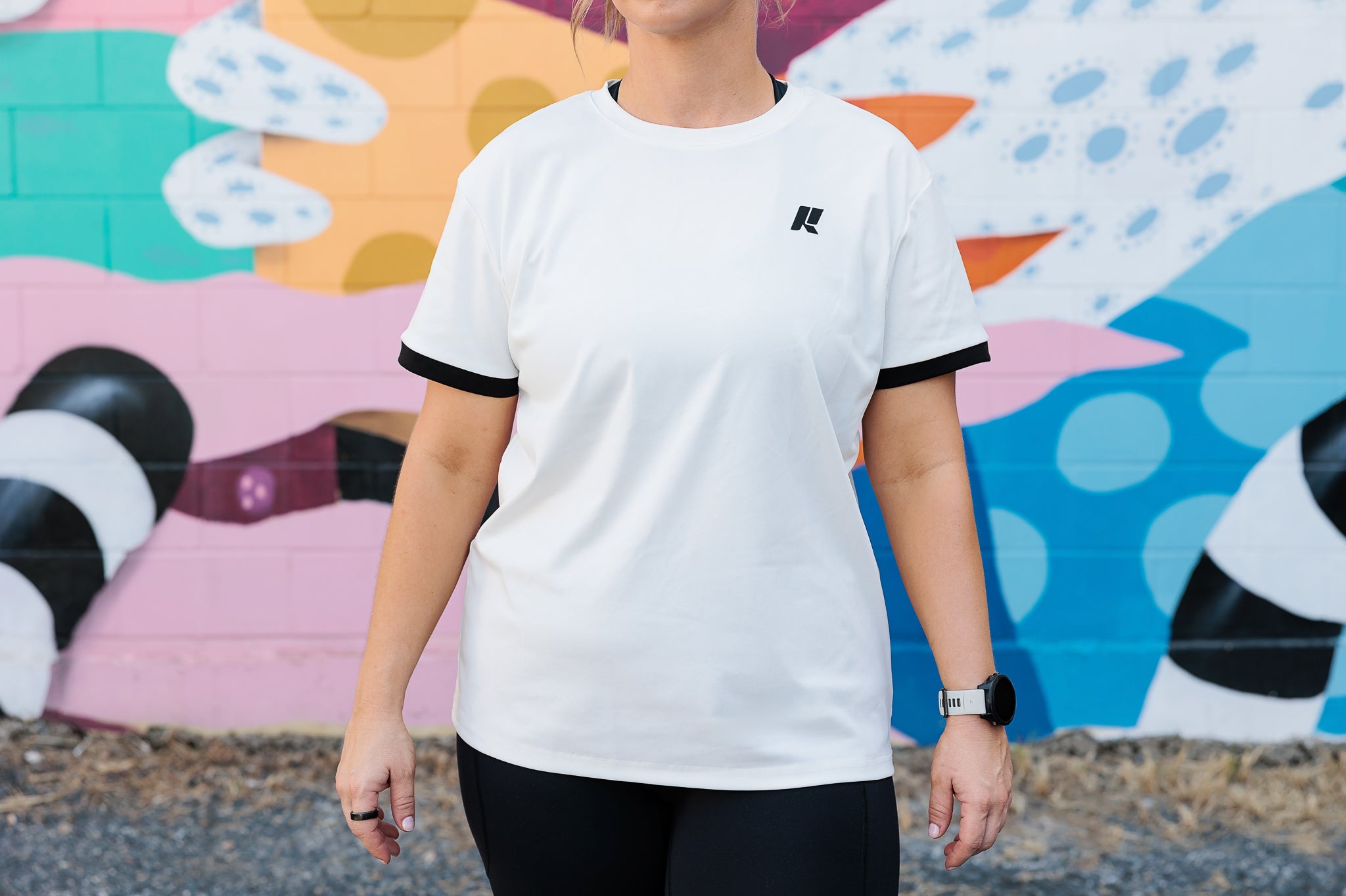 Your wardrobe’s hardest worker: a monochrome tee that does it all. Soft, breathable, and cut to flatter without trying too hard. Made from a cotton blend with a hint of stretch and finished with contrast piping and the KAM logo on the chest, it’s the kind of staple that quietly stands out.